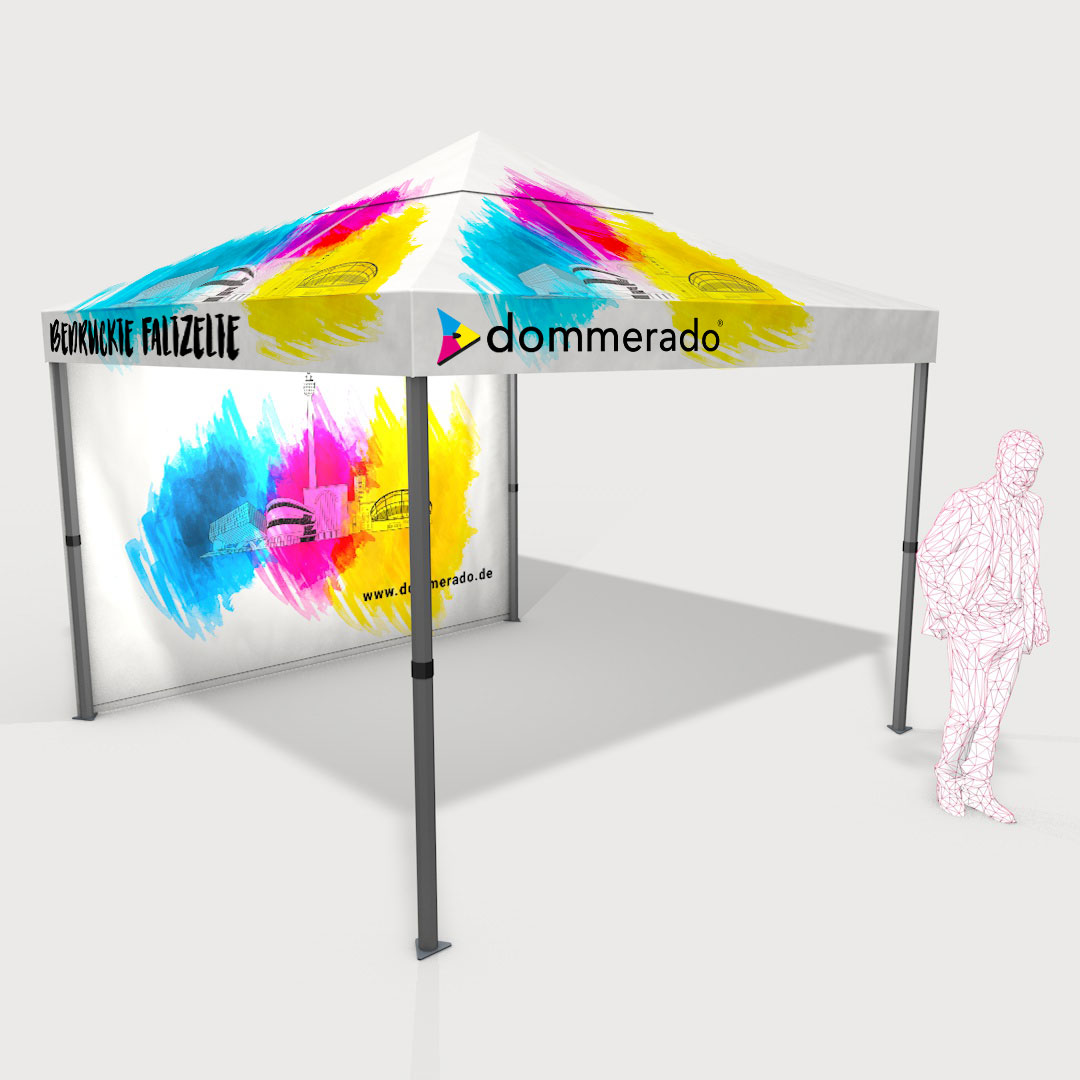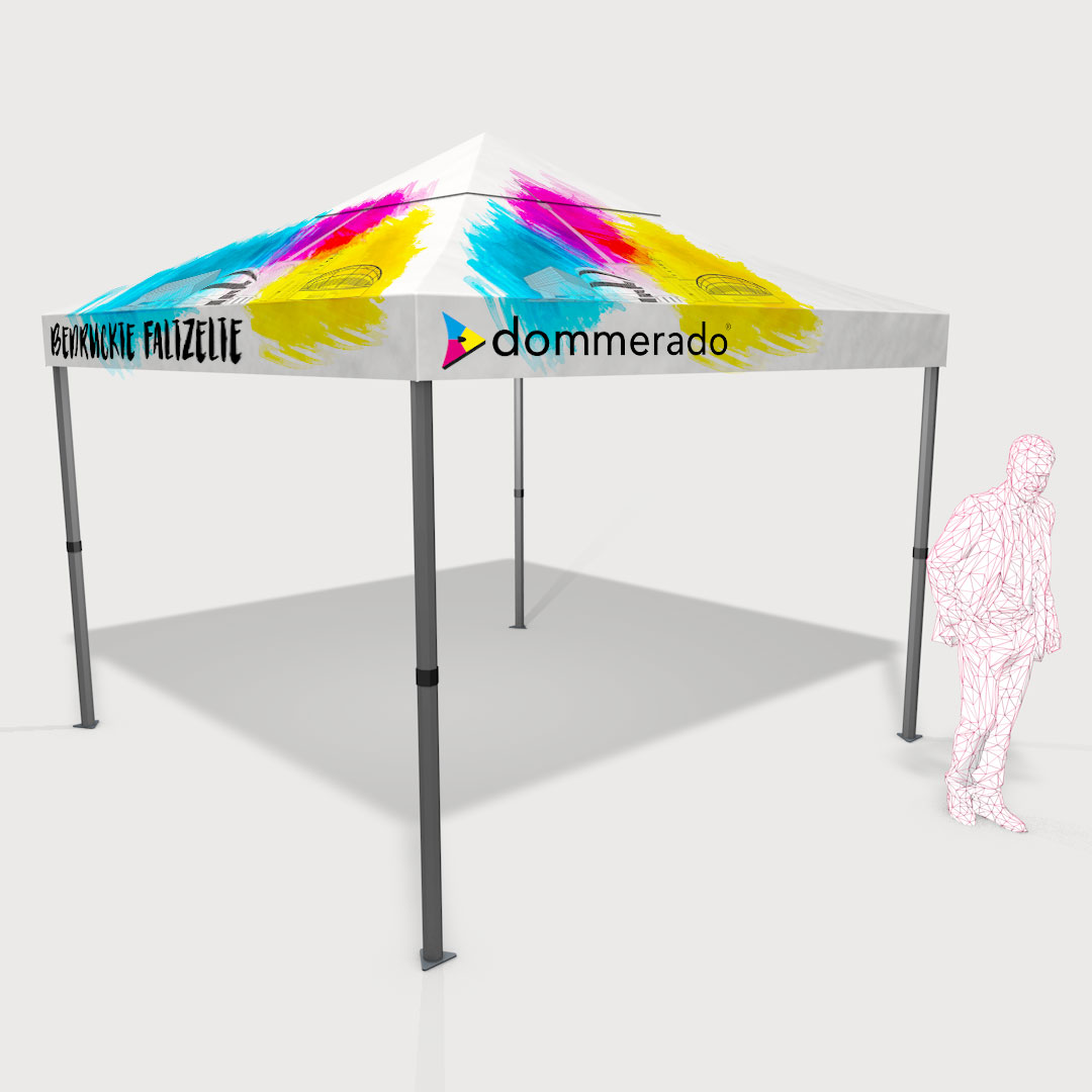 Stellen Sie sich in wenigen Schritten Ihr individuell bedrucktes Faltzelt zusammen.